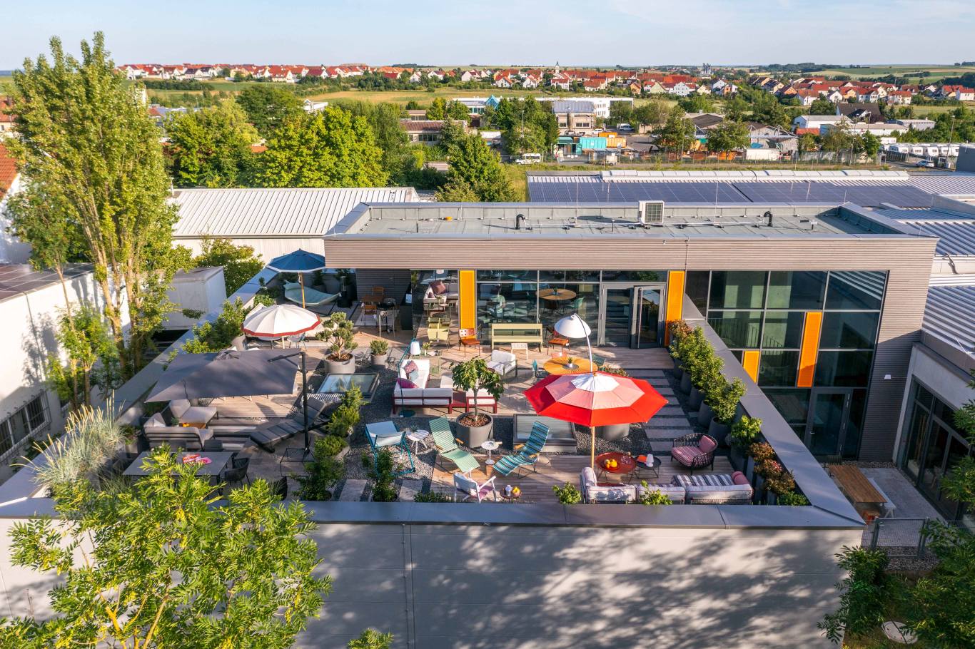 In spring 2022, we opened our new outdoor exhibition on the roof of our new building. Now, in addition to our classic home furniture exhibition, you can also discover lots of exciting outdoor design furniture on site.