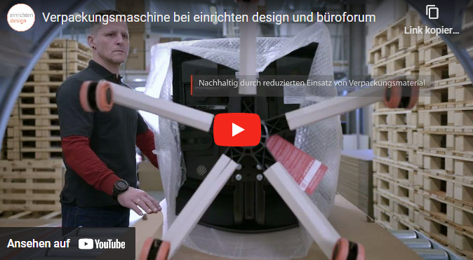 Another valuable team member: our Next Level chair machine. Thanks to it, we can not only pack swivel and designer chairs quickly and safely for transport. Thanks to the reduced use of packaging material, the machine is also impressive in terms of sustainability.